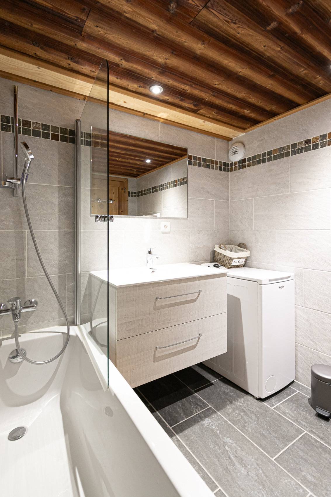 Salle de bain avec baignoire et lave linge à l’étage