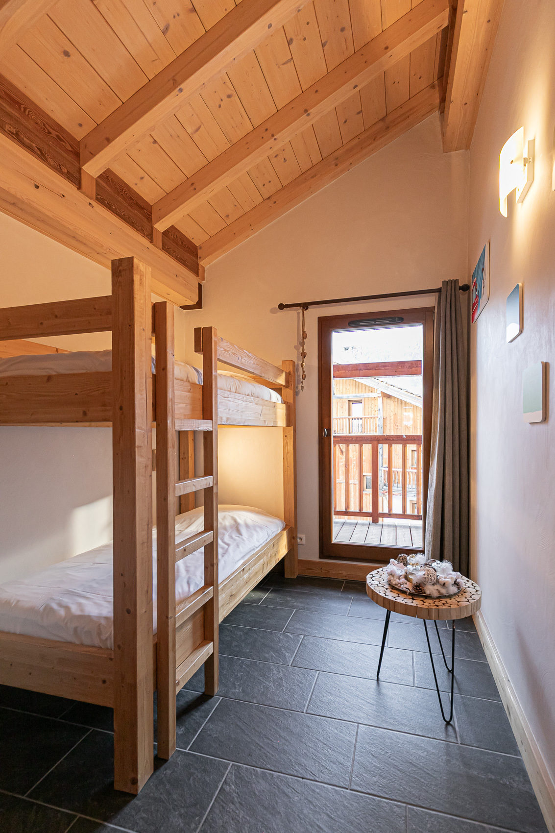 1 chambre avec lit double (160 cm) et lits superposés (90cm) à l’étage