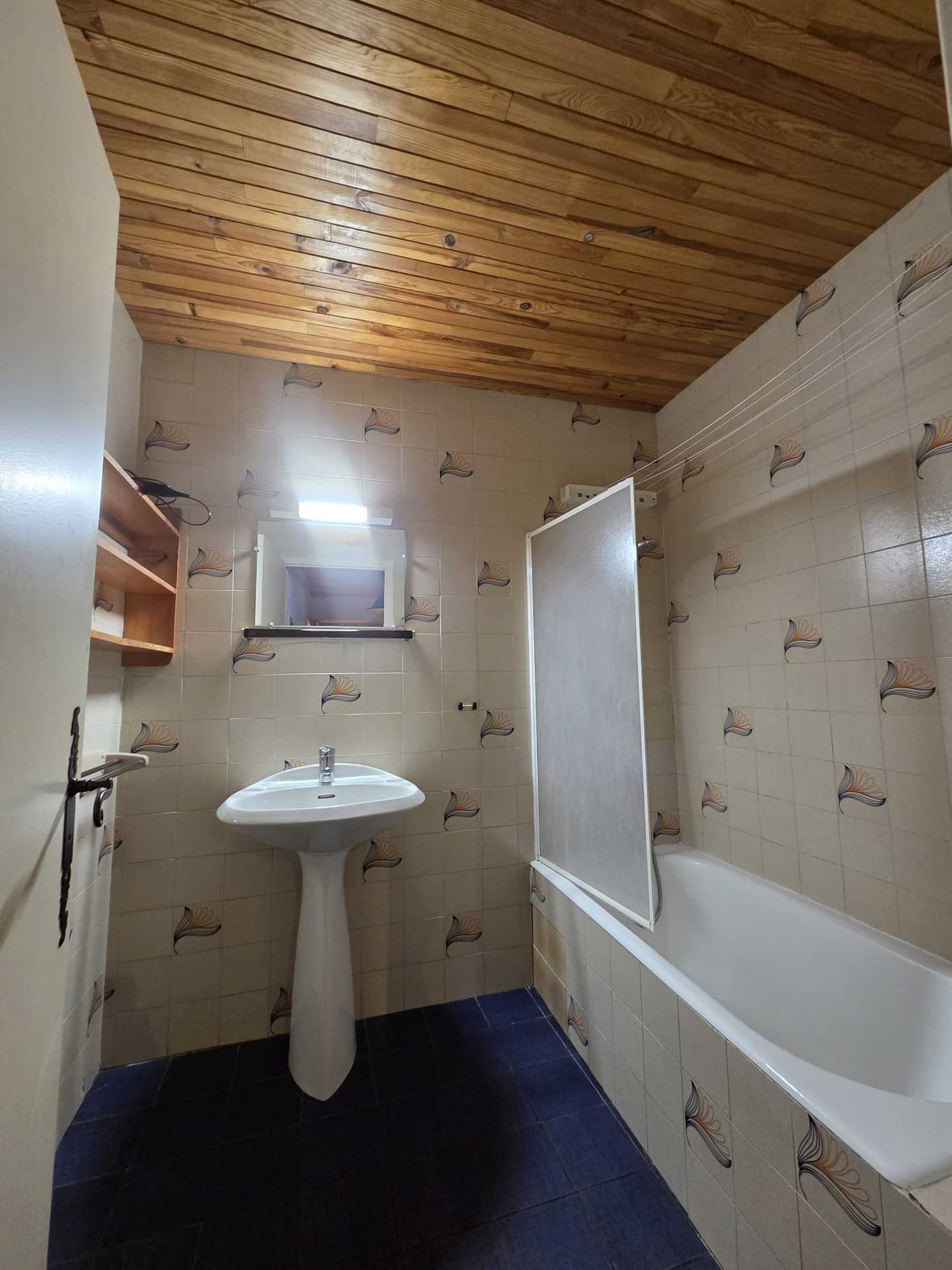 Sanitaires : Salle de bains avec baignoire (pare-douche) et lavabo. WC séparés.